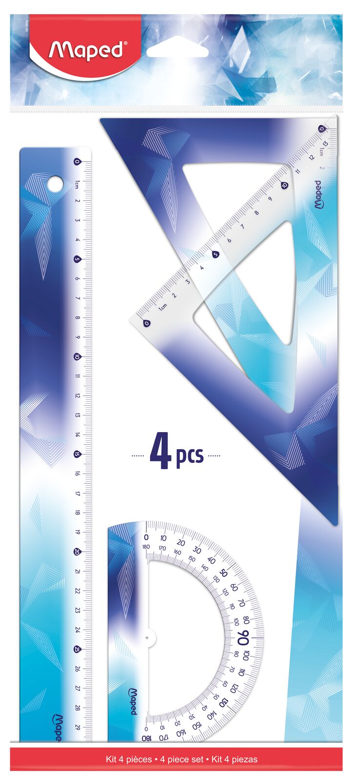 Kit de traçage et géométrie 4 pièces Arctic (règle 30 cm, équerres, rapporteur)