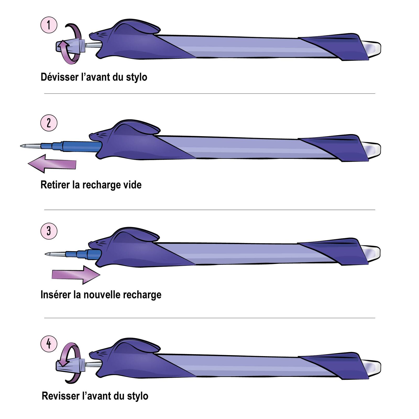 Compatible avec les recharges standards du marché. Pour recharger le stylo, dévisser l’embout à l’avant du stylo.