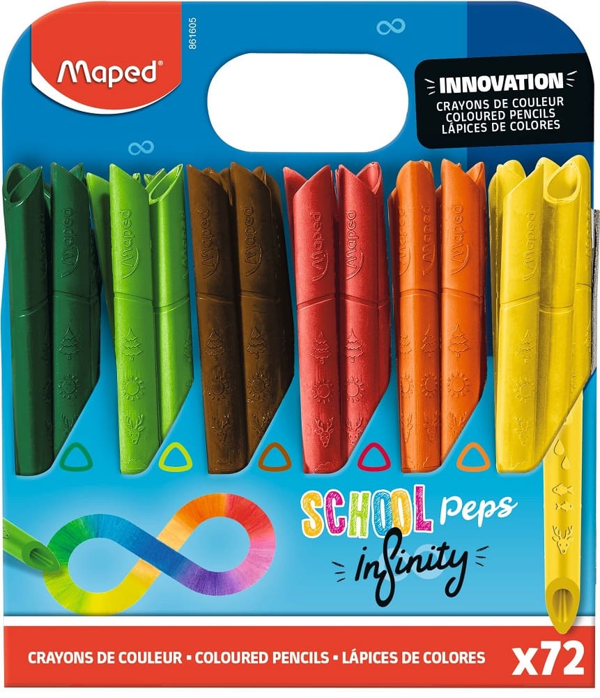 Découvrez des crayons de couleur sans taillage et 100% utilisables. Les crayons de couleur Infinity Maped sont innovants et vont révolutionner le coloriage des enfants à l’école. Avec le pack maxi format spécialement conçu pour la classe, les élèves auront de quoi colorier toute l’année !