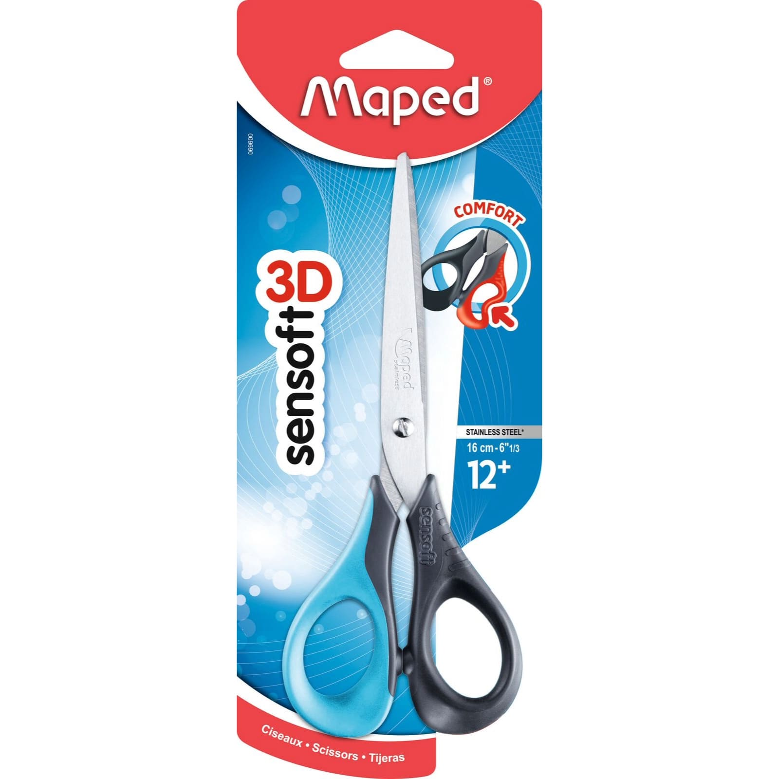 Conçus en collaboration avec un cabinet d’ergonomes, les ciseaux Maped Sensoft offrent un confort maximal inégalable. En effet, la souplesse et le toucher doux des anneaux assurent une prise en main agréable et sans sensation de crispation. L’enfant peut manier facilement la paire de ciseaux sans se faire mal.
