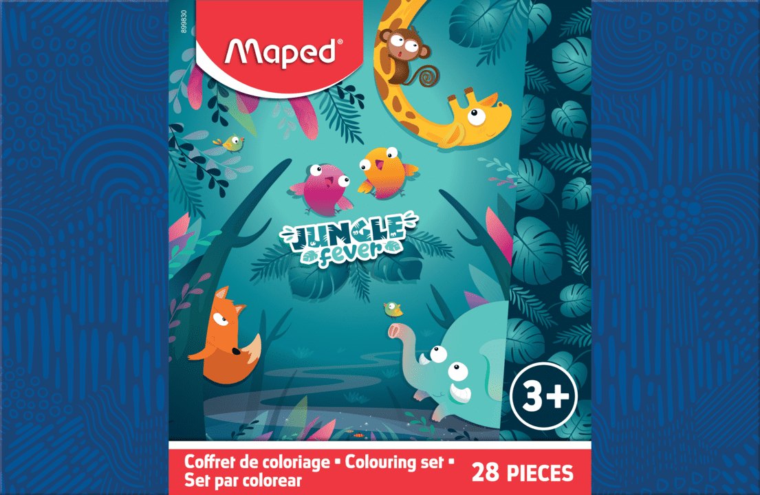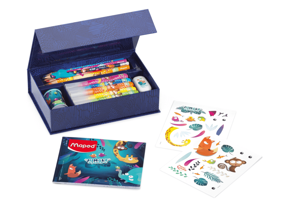 Le coffret propose des produits de coloriage de la collection Jungle Fever, spécialement conçue pour les petits artistes dès 3 ans. Les produits sont sûrs et adaptés à leurs petites mains.