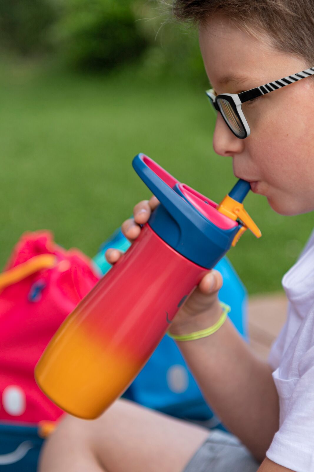 Les enfants aimeront le design personnage et les couleurs flashy du dégradé de cette gourde.