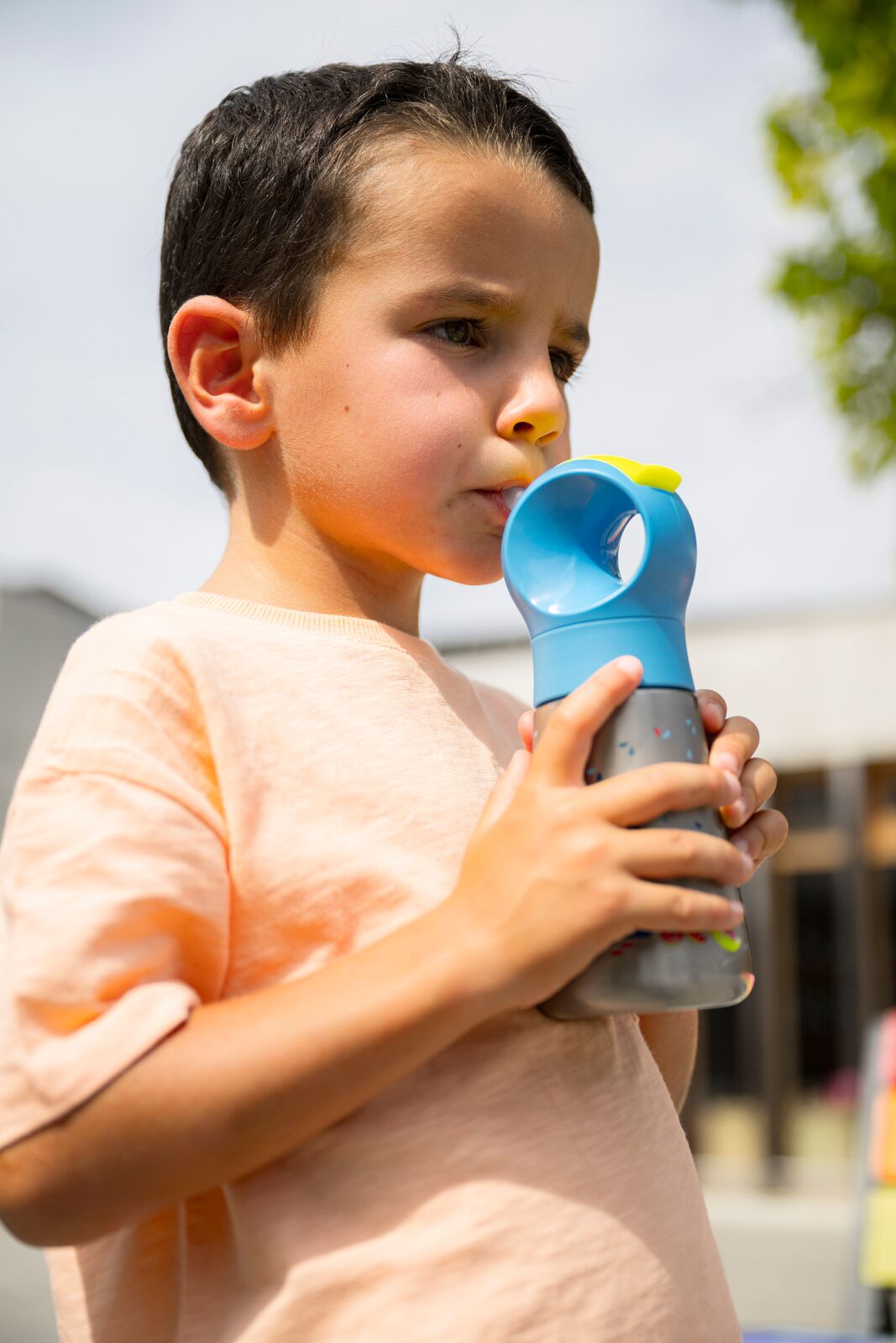La gourde en inox Miniz suit les enfants dans tous leurs déplacements : à l’école, lors des activités sportives, en sortie ou en balade.