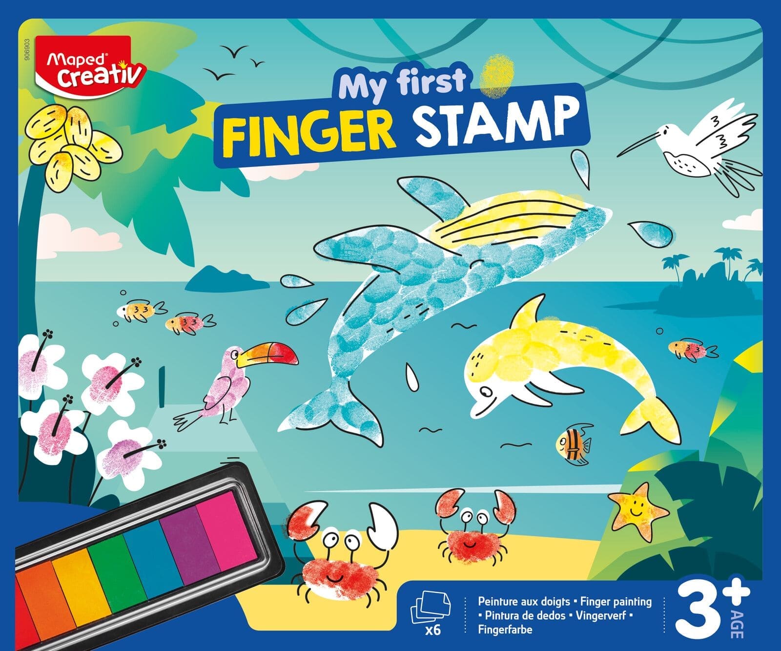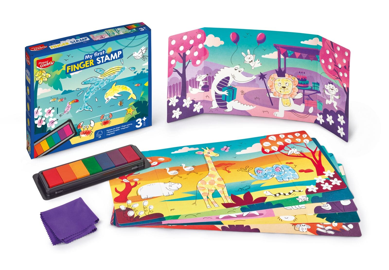 Le kit créatif My First Finger Stamp propose une activité créative simple et ludique pour les enfants dès 3 ans. Grâce à un encreur de 7 couleurs facile à utiliser, les enfants créent avec leurs doigts et complètent des cartes d’activités colorées en toute autonomie. Les enfants peignent avec leurs doigts grâce à l’encre et donnent vie à des posters ludiques.