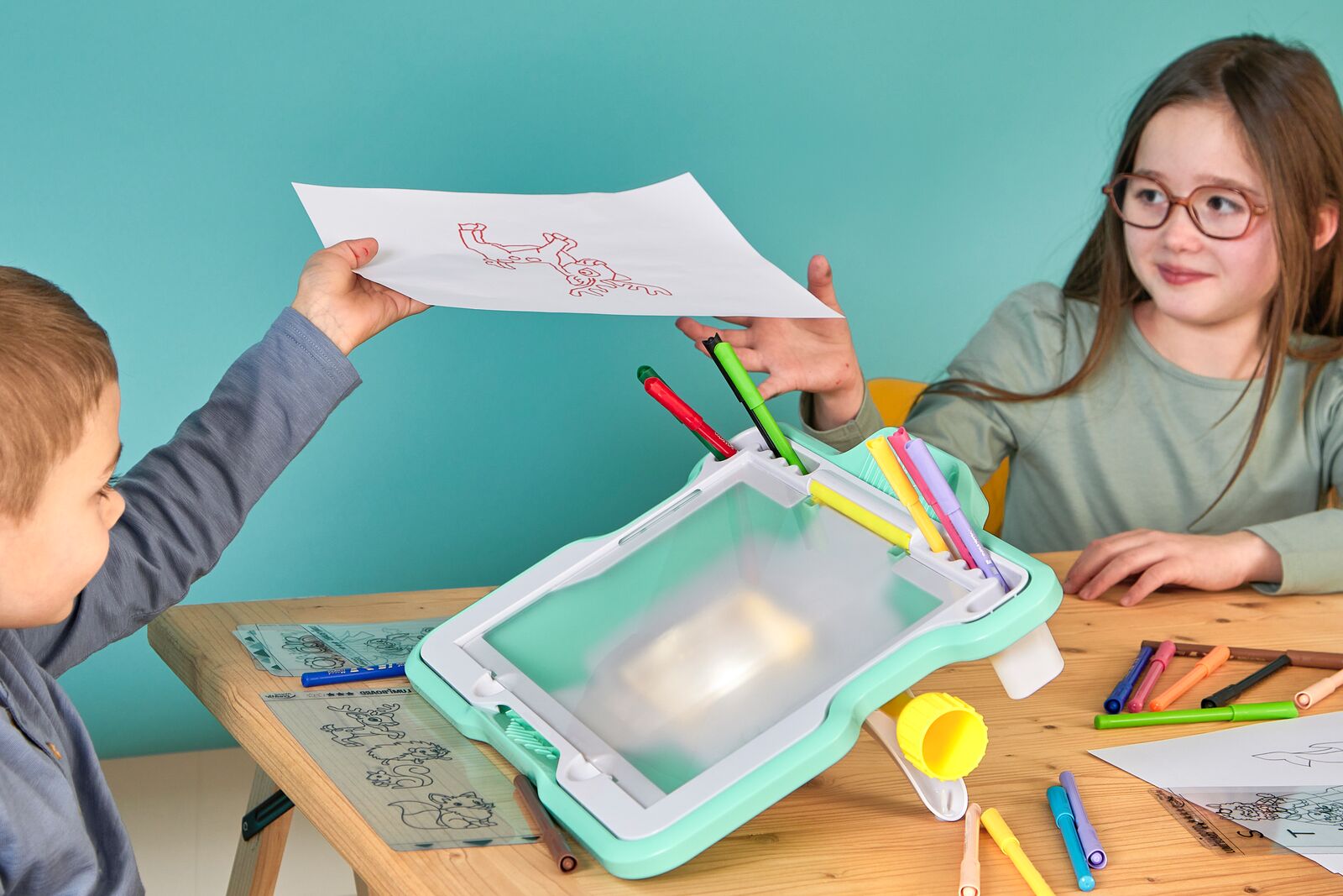 Machine à dessiner lumineuse Lumi Board pour apprendre à dessiner en s'amusant. 250 dessins à décalquer grâce à la lumière.