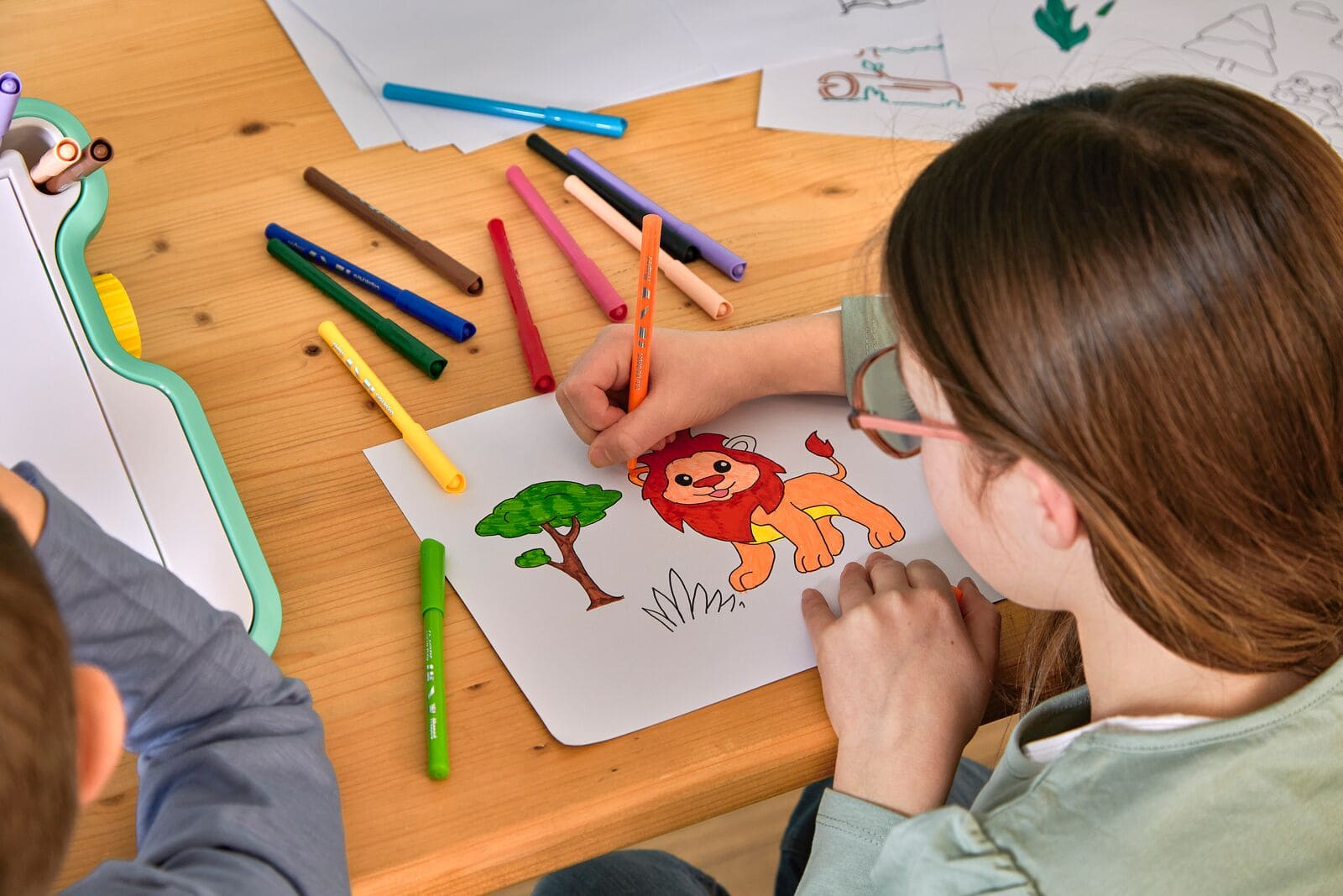 Grâce à la projection lumineuse de la station de dessin, votre enfant décalque les modèles. Après avoir reproduit les dessins, il peut ensuite les colorier. Votre enfant apprend à dessiner grâce aux fiches modèles qui lui permettent de réaliser jusqu’à 250 dessins différents. Les fiches d’activités ont 5 niveaux de difficultés et accompagnent l’enfant dans son apprentissage.