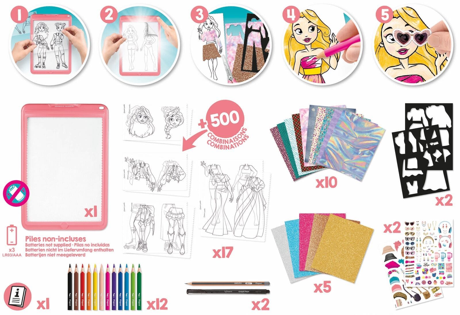 La tablette lumineuse Avatar’Tablet Fashion permet de tracer facilement les silhouettes et offre plus de 500 combinaisons de styles possibles pour créer des looks uniques. Chaque création devient un véritable jeu de mode, simple et intuitif, même pour les débutants.