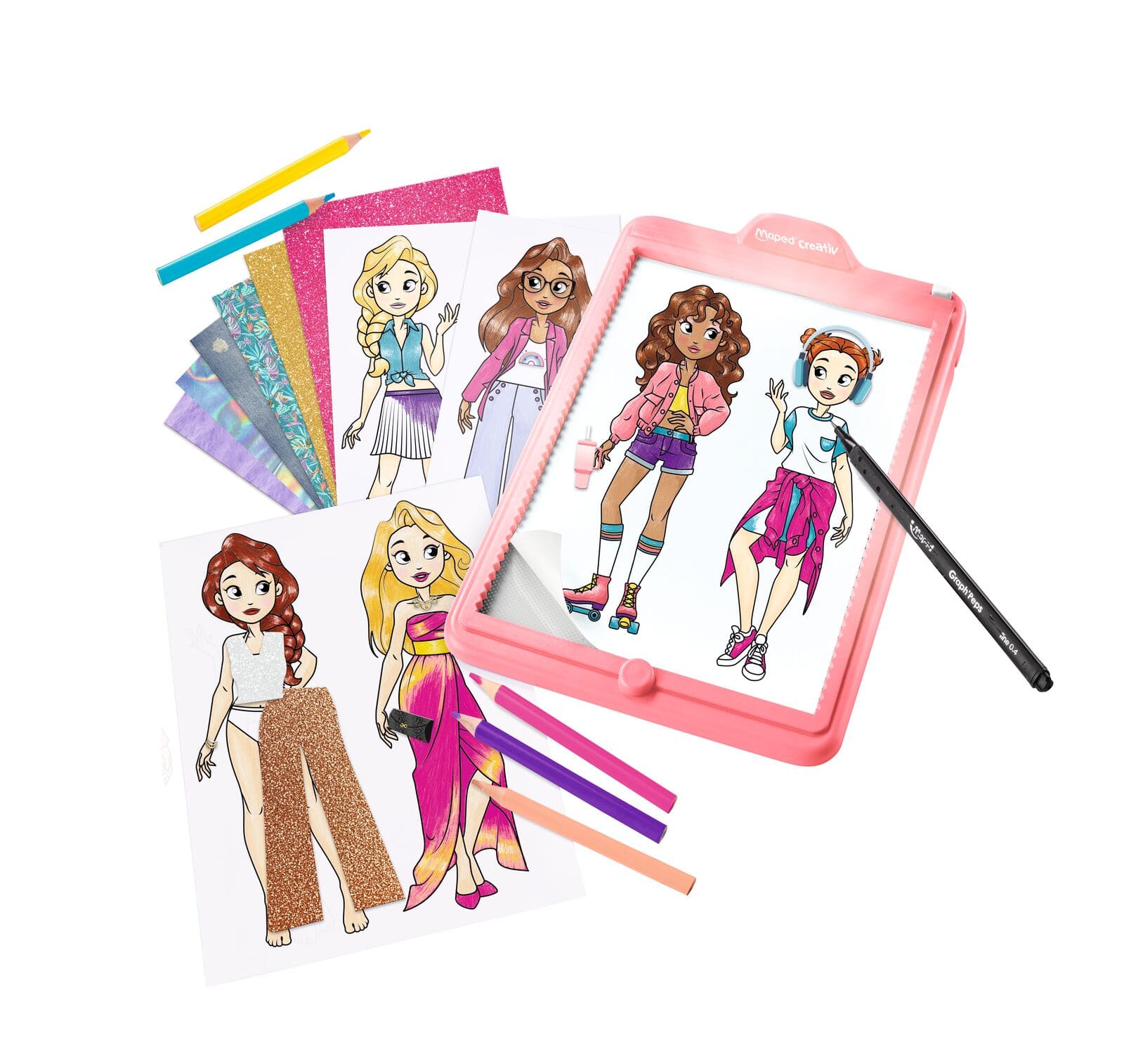 Entre choix des tenues, accessoires et décorations, les jeunes artistes peuvent composer des univers qui leur ressemblent. Ludique et inspirant, ce kit créatif de dessin est parfait pour les enfants passionnés de dessin, de tendances et d’histoires à inventer.