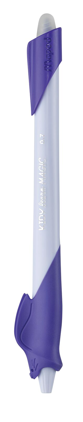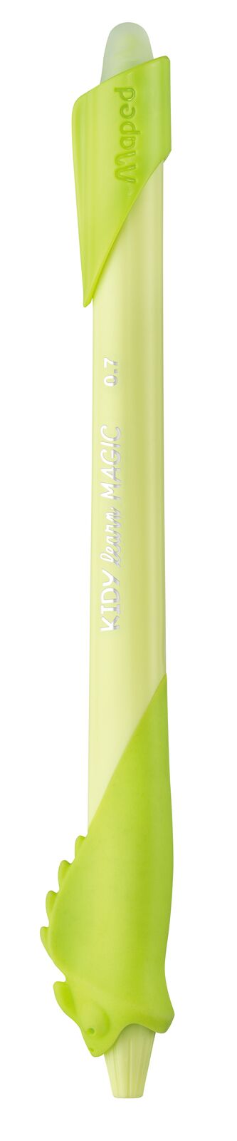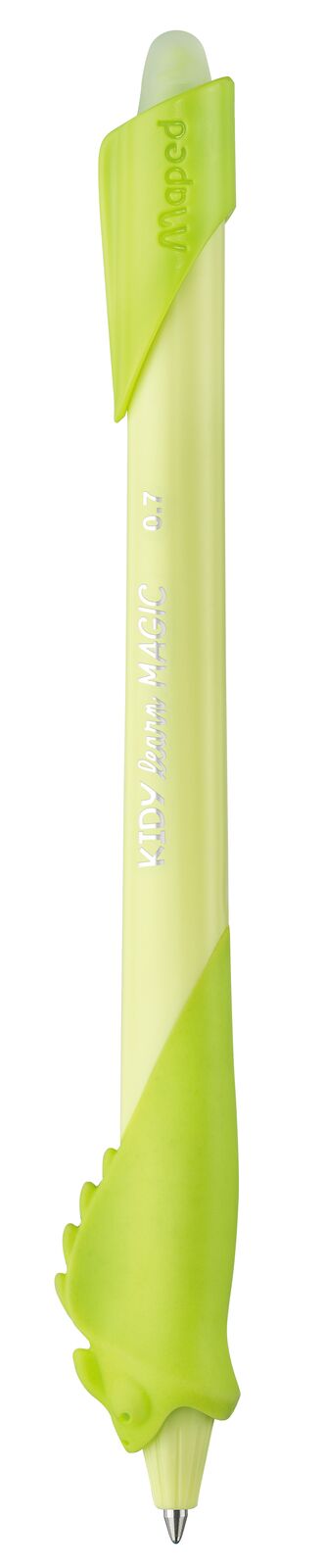 Pensé pour favoriser l’apprentissage de l’écriture et de la prise en main tripode, le stylo effaçable Kidy Learn Magic est composé d’une zone de préhension souple et confortable. Le guide-doigts, pensé pour empêcher le chevauchement des doigts, garantit une prise en main stable et ergonomique.