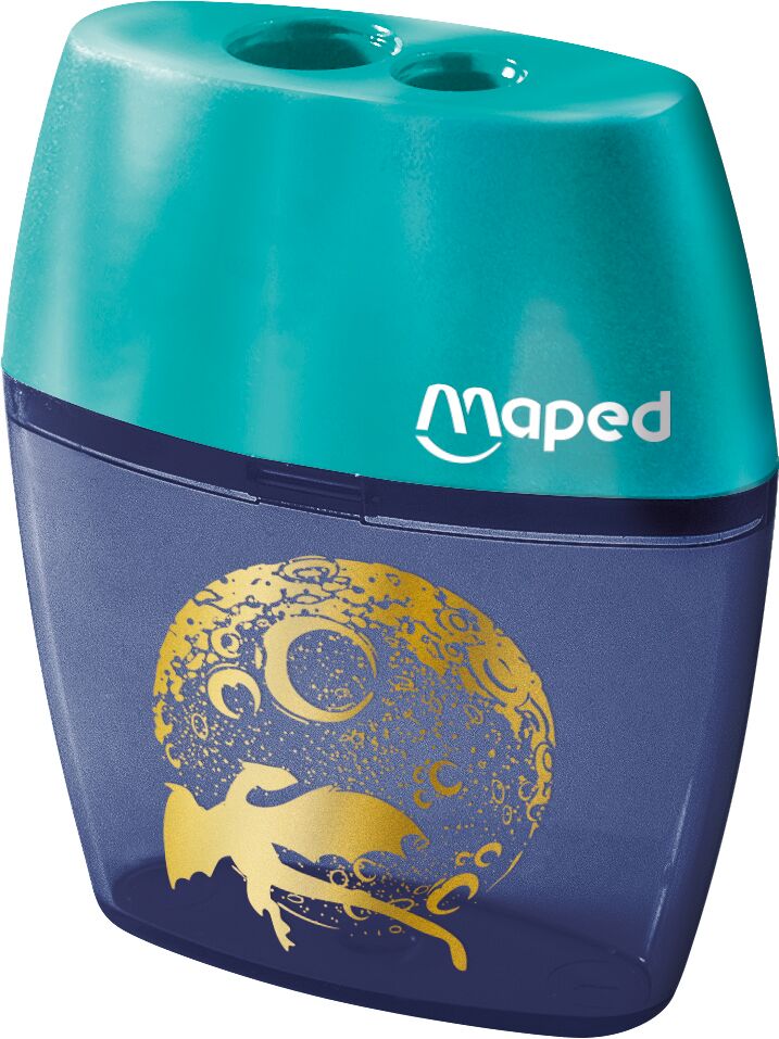 Taille-crayons Shaker Dragon 2 trous avec réserve intégrée, pratique pour tailler les crayons à l’école.